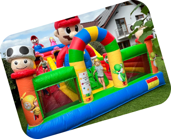 Unsere neue Hüpfburg Multifun “Mario” mit einer Größe von 5 x 7 x 5 Metern eignet sich ideal